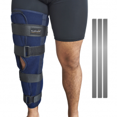Excelente para pacientes que necesitan la ayuda completa en una posición inmovilizada. Proporciona varios grados de soporte y estabilización a la pierna y rodilla.