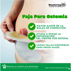 Auxiliar en el tratamiento de urostomía, colostomía e ileostomía, da un soporte abdominal manteniéndolo fajado para evitar la deformación del vientre por estoma.