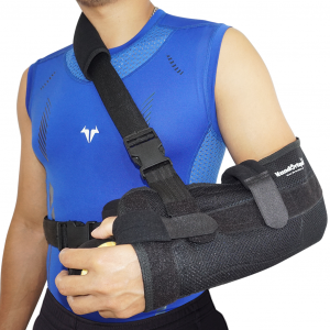 Soporte para brazo y hombro, ayuda a recuperar de dislocaciones, subluxaciones, lesiones o cirugías del hombro. El cojín realiza la abducción del brazo, en aproximadamente 10-15 grados, incluye pelota manual de ejercicios.