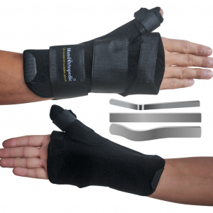 Provee sujeción, estabilización e inmovilización a la muñeca; con férula abductora de pulgar, palmar y dorsal. Útil en secuelas dolorosas por artritis y artrosis. Bilateral es adaptable para las dos manos